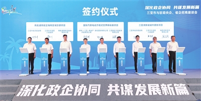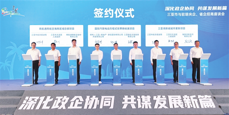 本报讯(记者 刘少珠)9月28日,在三亚市与驻琼央企、省企招商座谈会上,6个重点项目集中签约,这些项目涵盖低空经济、城市更新、国际教育、医疗器械等重点产业领域,将为三亚实体经济提质升级注入新动能。