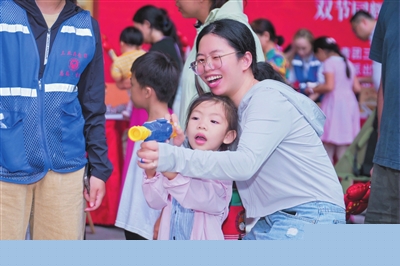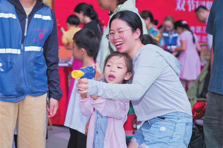 活动现场,拍照打卡区受到市民游客喜爱。在“双节心愿墙”、“萌熊打卡秀”、“玉兔戴月冠”等区域,大家手持活动手举牌,纷纷拍照留念,定格美好时刻。“红色主题互动区”活力满满。市民游客在玩乐中学习知识,通过积分赢取好礼。“幸运兑换站”前,不少人用“双节积分”兑换刮刮卡参与抽奖。