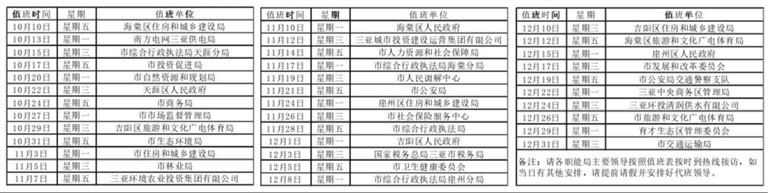 三、值班地址:三亚市吉阳区迎宾路352号城运大厦12楼。