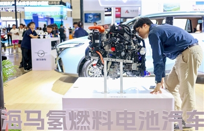 另一侧,海南本土企业海马汽车及旗下南海氢行携海马氢能汽车7X-H亮相。这是海马7X-H连续第二年作为官方指定用车为国内外参会嘉宾提供出行服务,它还是国内首款应用于网约出行市场的氢能乘用车。海马汽车项目经理钟辉煌介绍,海马7X-H是由海马汽车与丰田汽车合作研发的国内首台70MPa氢燃料电池MPV,具有零排放、高安全等特点,搭载丰田电堆系统和70MPa高压储氢罐,加氢时间仅需3-5分钟,续航达800公里,百公里氢耗0.87公斤,可在零下30摄氏度环境中使用。