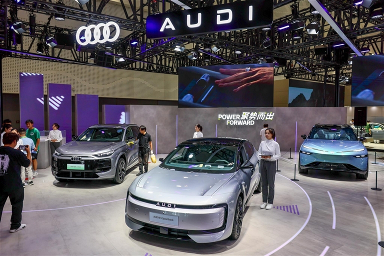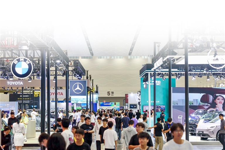 不远处的上汽集团展台,同样不乏关注“流量”。一款黑色外观的新一代智己LS6车身线条优雅,兼具科技感。现场工作人员介绍:“这款车型首搭‘恒星超级增程’,可为用户带来1500公里全程电车的强劲动力。”