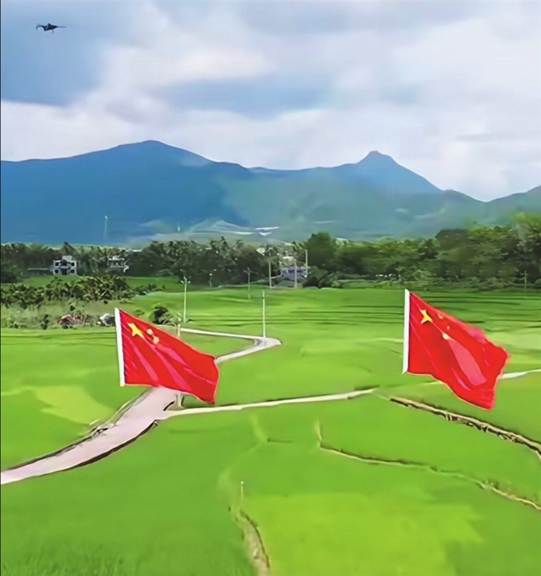充满希望的三亚田野上空,五星红旗迎风招展。