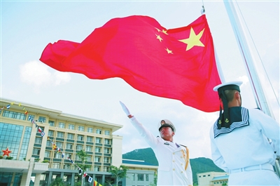 10月1日上午,海军某部举行隆重升国旗仪式,庆祝中华人民共和国成立76周年。 本报记者 袁永东 通讯员 蔡彬 摄