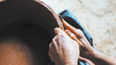 “要不要来体验一下?”黎族阿姐在热情招呼游客之余,手中的制作也没停下来,原本普普通通的陶坯在她的手中慢慢出现了器皿的形状,把黎族“传女不传男”的制陶规矩,揉进作品里。