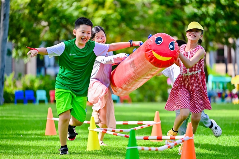 拥抱大海、亲吻阳光,在沙滩边嬉戏、椰树下乘凉,品味海鲜美食、共享亲子时光……“三亚海清山美,真是旅游度假的好地方。”10月3日,入住亚龙湾五号别墅度假酒店的客人张倩莲女士一家人开心不已,“不仅孩子和父母可在酒店寻宝,参加沙滩风筝制作、沙雕制作、魔法气球制作、电脑迷宫体验等活动,还可以和外教一起学习外语、礼仪,锻炼团队合作意识,共享假日欢乐时光。”