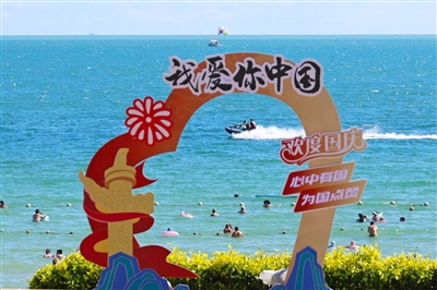 10月3日,三亚大东海旅游区节日氛围浓厚。