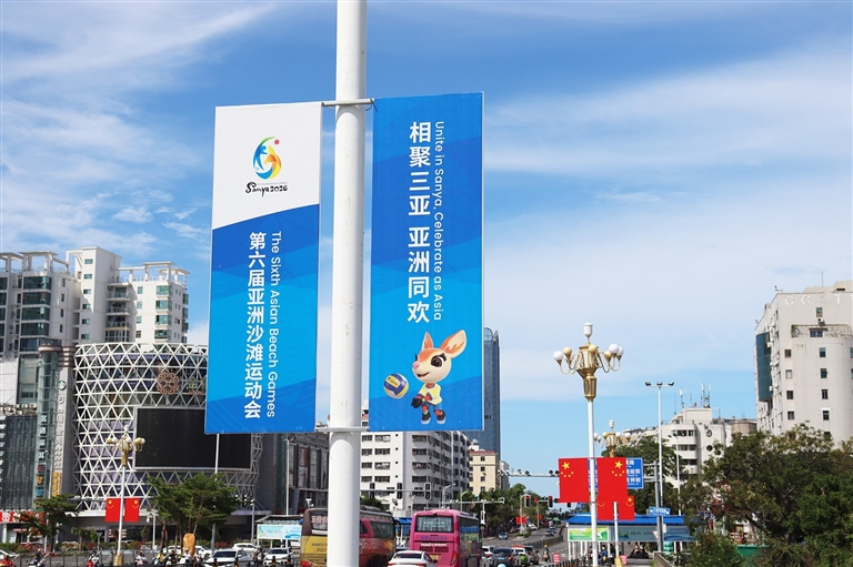 据悉,10月4日将迎来2026年第六届亚洲沙滩运动会(以下简称“三亚亚沙会”)开幕倒计时200天。值此“十一”国庆假期,三亚市主要道路的公交车站候车亭、公交车、灯杆、户外屏等,披上三亚亚沙会主题定制“新衣”,以整洁亮丽、动感十足的全新形象亮相街头。