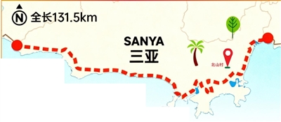 从三亚市区驱车沿着海南环岛旅游公路往东,半个多小时就可抵达国家海岸海棠湾。经过几个弯道,远远看见充满黎族风情的北山村路牌立于路边,一条蜿蜒的水泥路在田野间舒展,将散落的房屋连缀成串。
