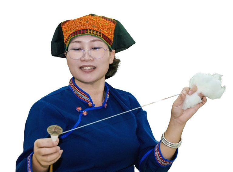 吉菊莲是海棠湾吉菊莲黎锦手艺农民专业合作社负责人,也是三亚市非物质文化遗产项目黎族传统纺染织绣技艺传承人。