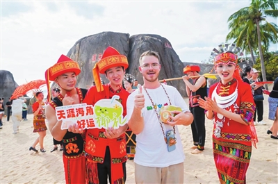 “来之前,我以为三亚只有阳光沙滩。”来自哈萨克斯坦的游客Jim体验黎族打柴舞后兴奋地表示,“没想到三亚有这么多精彩的文化,太迷人了!”