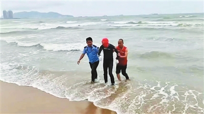 10月5日,因三亚湾天气海况复杂,一支由三亚综合行政执法局、社区、辖区派出所组成的联合巡查组严格执行巡查任务。巡查中,市综合行政执法局天涯分局应急管理行政执法大队三中队二组值班人员崔传智发现一名老人冒险下海游泳后体力不支。他毫不犹豫冲入海中,与社区工作者合力将老人托扶上岸。“当时海浪打得人睁不开眼,是他们救了我!”70余岁的市民梁某事后连连致谢。