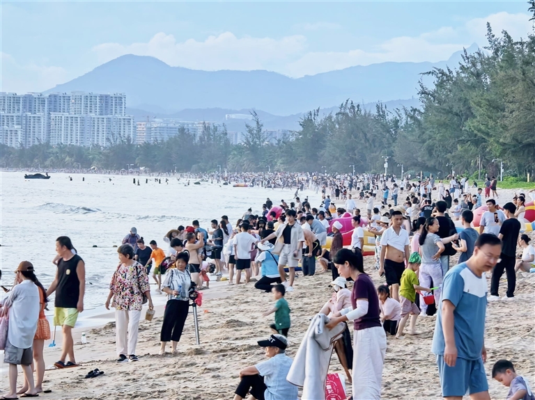 10月8日,三亚湾海滩上游人如织,洁白的沙滩与摇曳的椰林,共同营造出浓郁的热带风情。孩童逐浪堆沙,笑声清脆;游人踏浪拍照,裙摆飞扬,处处洋溢着度假的欢愉。椰风海韵间,八方来客在此尽享海滨独有的轻松与惬意。