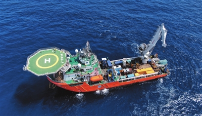 | “海洋地质二号”科考船搭载“海马”号深海遥控潜水器在南海北部进行“源火”采集(9月18日摄)。 |