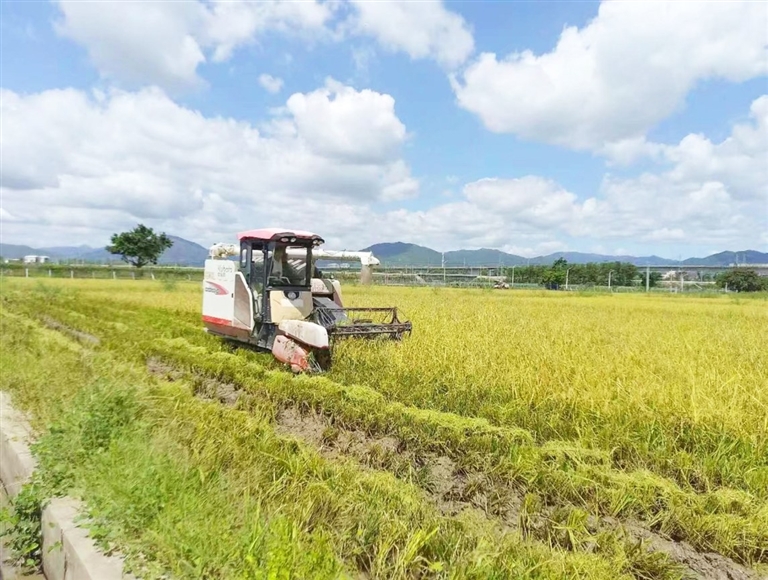 “轰隆隆……”天涯区妙林村的稻田里热闹非凡,一台台收割机在金黄的稻浪中来回穿梭,洋溢着收获的喜悦。10月8日,三亚市天涯区2025年推广优质稻及机械化生产项目迎来喜悦时刻——130亩水稻顺利完成收割与晾晒工作。