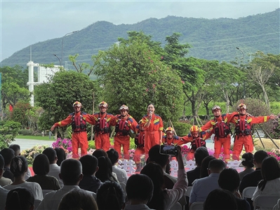 如果说教育是“润物细无声”的守护,那么消防则是“秒级响应”的担当。同样由“鹿鸣新语”宣讲团带来的《消除隐患 “港”好有我》,则呈现了从消防双语服务队到“预验收+容缺受理”机制,再到水陆两栖救援车与灭火机器人,串联起自贸港建设中三亚消防的创新和守护。