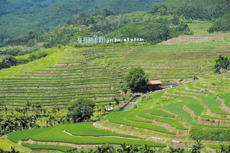 本报讯 近日,走进五指山市毛阳镇牙胡村,层层梯田依山铺展,绿浪涌动,游客徜徉其间,感受人与自然的和谐共生。