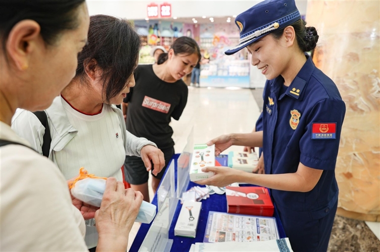 近日,市消防救援支队组织人员,走进全市各大型商业综合体,集中开展消防安全“上门服务”活动。 活动中,消防监督员深入商场重点区域,细致排查消防设施、疏散通道等关键环节的火灾隐患,并现场指导整改。同时,宣传人员面向员工和顾客开展“面对面”宣传,普及初期火灾扑救与火场逃生知识。