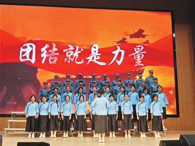 看,学生们身姿挺拔、眼神坚毅,将新时代青年对国防力量的崇敬与保家卫国的决心融入激昂歌声中。《歌唱祖国》《没有共产党就没有新中国》《保卫黄河》等歌曲接连开唱。