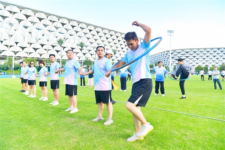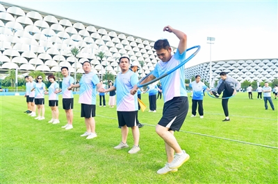 本报讯(记者 冯晨阳)10月17日,2025年第二届三亚市“国资风采杯”职工运动会在三亚市体育中心训练场正式拉开帷幕。来自三亚市国资系统各单位的千余名职工暂别工作岗位,在拔河、8×50米接力、赶椰子等11项兼具竞技与趣味的赛事中,诠释新时代国资人的协作精神与奋进姿态。