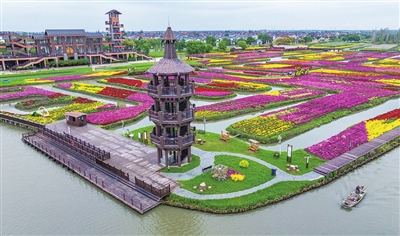 10月17日,游客在江苏省兴化市千垛景区赏菊游玩。 新华社发(周社根 摄)