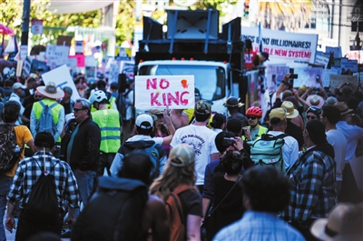 游行组织方说,美国数百万人当天在逾2700个城镇参加了和平示威游行,这是6月14日首次全美“不要国王”抗议活动的延续。