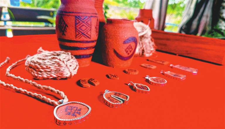 记者了解到,每块黎陶吊坠,均以天然植物浆液和矿物粉,细致勾勒黎族传统图腾大力神、龙鱼、甘工鸟等,承载着吉祥、丰收、平安、健康、喜乐和幸福的美好寓意。再以黎银包裹,银饰的光泽与黎陶的质朴形成鲜明对比,尽显优雅坚韧。
