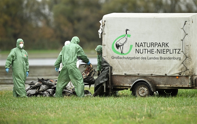 德国勃兰登堡州环境部门22日表示,该州正在经历其史上最大规模的野鸟禽流感疫情,主要波及正向南迁徙的鹤群,病毒传播速度极快,目前已确认超过1000只鹤死亡。荷兰、葡萄牙、拉脱维亚等国近期均在天鹅、野鸭、鹤等死亡野鸟中检测出了禽流感病毒。