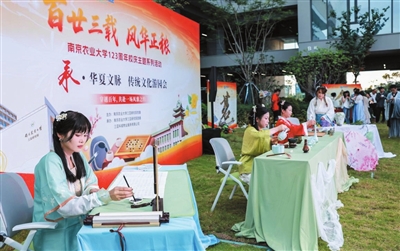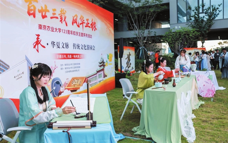 本报讯(记者 冯晨阳)重阳节将至,10月24日,南京农业大学三亚研究院举办了一场以“百廿三载 风华正秾”为主题的重阳传统文化游园会。来自缅甸、文莱、泰国、柬埔寨、老挝等5国的农业、科技等部门代表,与全院师生齐聚研究院广场花园,在椰风海韵中体验中国优秀传统文化的独特魅力。