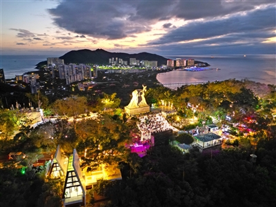 | ① 鹿回头风景区夜间游火热,人头攒动,灯火璀璨,将山海轮廓晕染得别具风情。 |