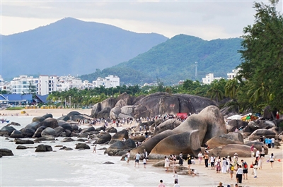 夕阳西下时,三亚湾的椰梦长廊内,新人正把婚纱浸在金辉里;后海的浪尖上,冲浪者踩着浪花飞驰;黑土村的屋子里,游人跟着传承人学织黎锦,渔歌与笑声被晚风卷着,飘向远处的海平面。