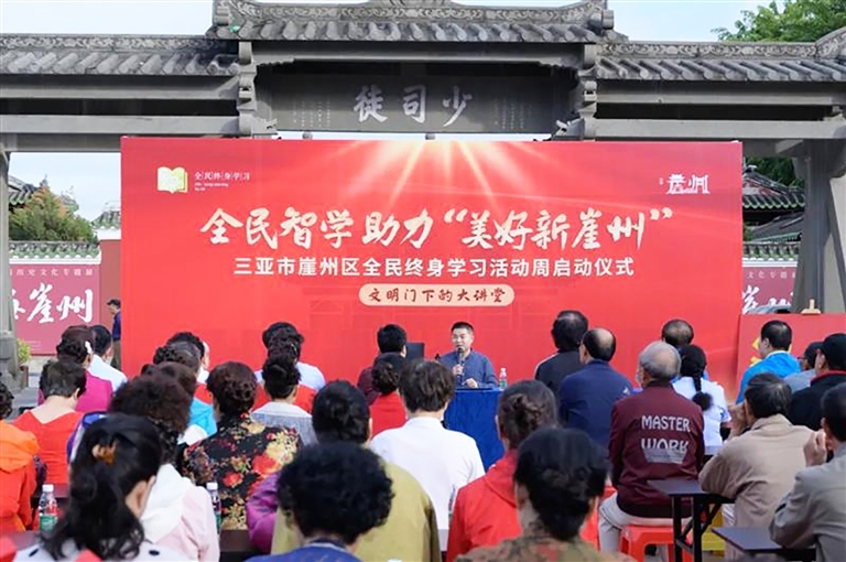 “文明门下大讲堂”自2020年9月启动以来,以崖州文明门这一地理文化标志为依托,打破传统课堂的限制,将理论宣讲搬到城墙下、街巷中,以零门槛、全开放的形式让党的创新理论“飞入寻常百姓家”。四年来,大讲堂累计吸引2.3万人次参与学习,不仅成为基层理论传播的重要阵地,更化作推动乡村振兴的精神引擎。