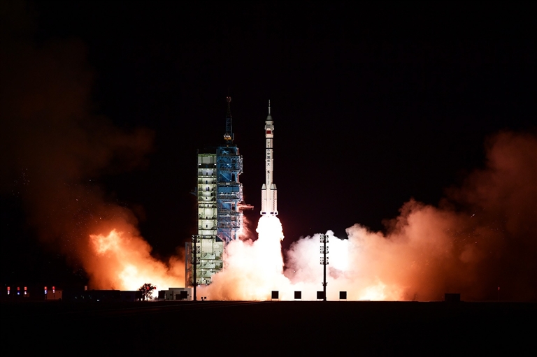 10月31日23时44分,搭载神舟二十一号载人飞船的长征二号F遥二十一运载火箭在酒泉卫星发射中心点火发射,约10分钟后,飞船与火箭成功分离,进入预定轨道,航天员乘组状态良好,发射取得圆满成功。 新华社发(汪江波 摄)