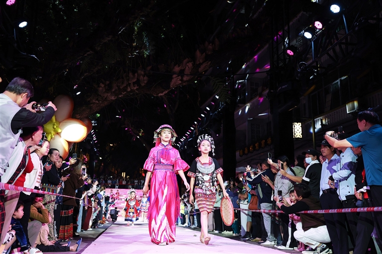五指山市拥有深厚的黎苗文化底蕴。近年来,该市以民族时装“村秀”为载体,积极探索非遗传承、生态保护、乡村振兴协同发展的新路径。“村秀”活动突破传统时装秀模式,将舞台设置在乡村田间、城市公园,模特由当地村民、城市居民以及基层干部组成。模特身着传统服饰,手持农具与家乡特产,以自信的步伐展示家乡的风采,生动诠释了乡村文化的独特魅力。