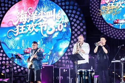 当晚7点半,一曲融合热带风情的爵士乐响起,拉开音乐节的帷幕。海风轻拂的滨海舞台上,国际音乐人用灵动旋律与现场观众互动,激昂的小号声划破夜空,舒缓的钢琴曲随椰风轻淌,将爵士乐的自由与海南的椰风海韵巧妙融合;台下观众或随节奏轻晃身体,或举起手机记录精彩瞬间,沉浸式体验让滨海夜空充满艺术氛围。