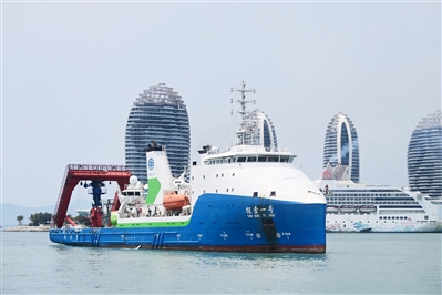 历时50天科考,顺利完成中国-印度尼西亚爪哇海沟联合深潜任务后,“探索一号”科考船搭载“奋斗者”号全海深载人潜水器返回海南三亚(资料图片)。 新华社发