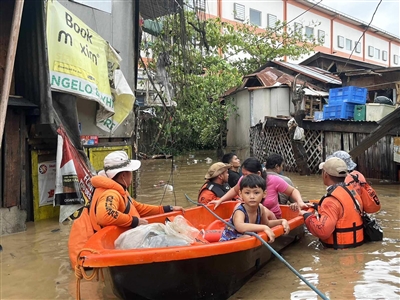 | 11月4日,在菲律宾宿务省,救援人员帮助受灾居民撤离。 新华社发(菲律宾海岸警卫队 供图) |