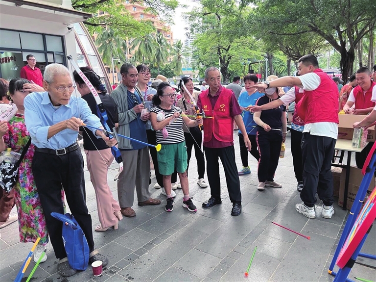 针对“候鸟”党员在健康保健、文化娱乐等方面的需求,天涯区委充分发挥三亚湾党群服务中心作为“候鸟”党建领域阵地的作用,打造“夕阳红私塾”品牌。在这里,各类活动精彩纷呈。“健身·八段锦”课堂上,老人们身姿矫健,一招一式尽显活力;“银龄巧手班”里,大家发挥创意,用灵巧的双手制作出精美的手工艺品。这些活动不仅丰富了“候鸟”党员们的精神文化生活,还让他们在锻炼中增强了体质。