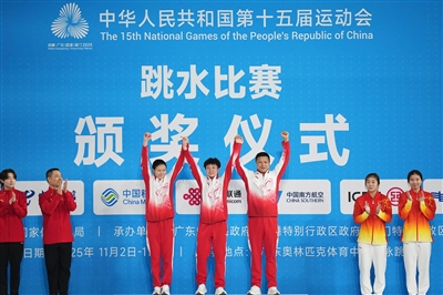 第十五届全国运动会跳水项目即将收官,广东队成绩亮眼:卫冕女子团体冠军,男团斩获全运会“八连冠”,女子个人全能摘金,包揽男子、女子双人3米板冠军……