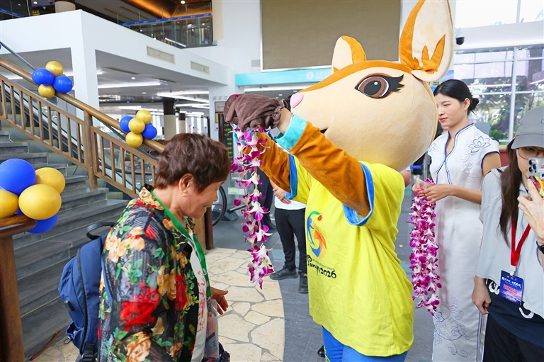 本报讯(记者 刘佳)11月12日,为欢迎“蓝梦之歌”号邮轮首访三亚,2026年第六届亚洲沙滩运动会(以下简称“三亚亚沙会”)吉祥物“亚亚”惊喜亮相,为远道而来的游客献上了一场独具椰风海韵的“欢迎礼”,成为最亮眼的风景。
