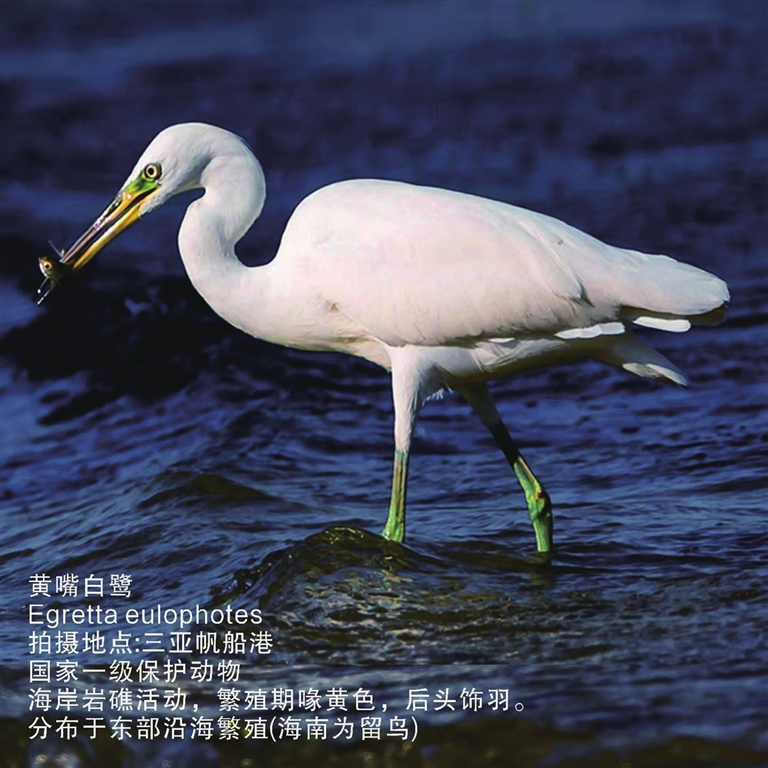 在三亚拍摄的国家一级保护动物——黄嘴白鹭。