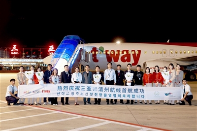本报讯(记者 李少云 通讯员 王慧茹)11月17日23:54,由德威航空执飞的“三亚?清州”航班平稳降落在三亚凤凰国际机场(以下简称“三亚机场”),标志着三亚首条往返韩国清州的定期国际航线正式开通。