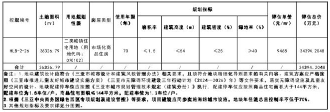 根据三亚市人民政府《关于挂牌出让三亚市中心城区控规HLB-2-26地块国有建设用地使用权有关事项的批复》(三府函〔2025〕746号),经市政府批准,现将一宗国有建设用地使用权挂牌出让及有关事项公告如下: