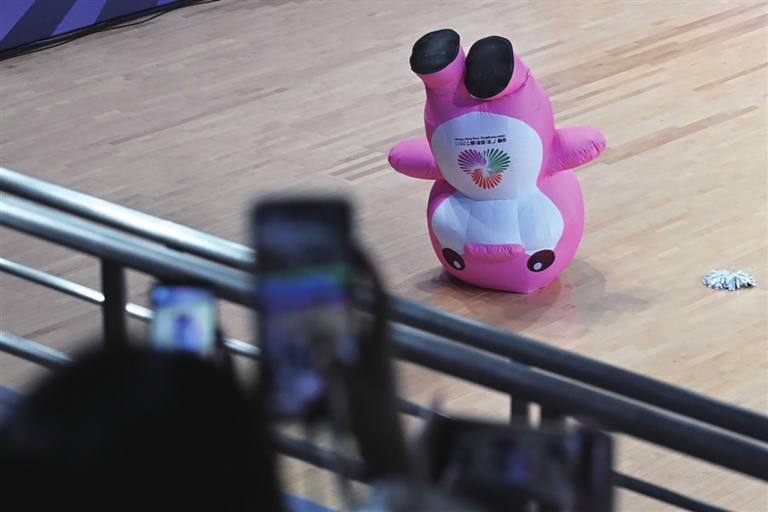 这是玩家与一款十五运会吉祥物玩偶的互动。