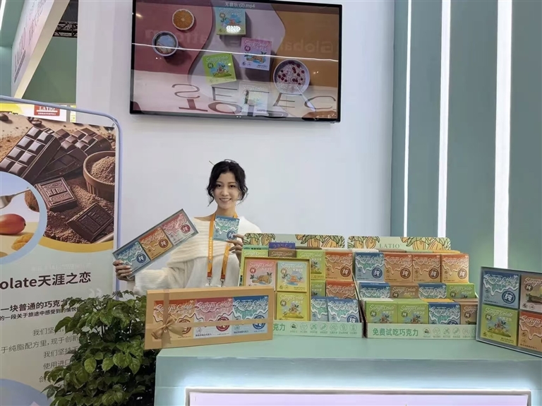 本报讯(记者 胡拥军)近日,在第八届中国国际进口博览会上,一场关于热带风物与巧克力艺术的创新对话借此盛会悄然展开。来自三亚的本土巧克力品牌——“Sanya Chocolate 天涯之恋”首发即“吸睛”,向全球客商展示了海南“旅游+食品”产业升级的新样本,成为本届进博会上一道独特的三亚“甜蜜风景”。