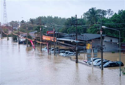 | 这是11月25日在泰国宋卡府合艾市郊拍摄的洪灾景象。 新华社发 |