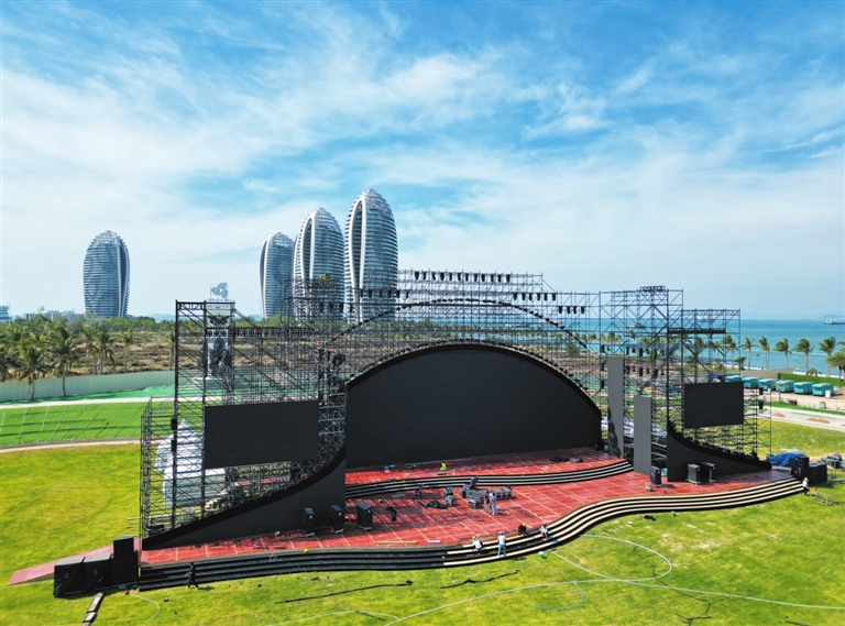 本报讯(记者 冯晨阳)备受瞩目的第七届海南岛国际电影节将于12月3日至9日在三亚举行。盛会临近,各项筹备工作有序推进,其中开闭幕式舞台搭建已进入最后冲刺阶段。一座以“东方光影浪潮”为核心理念精心打造的艺术地标,目前正在三亚中交凤凰岛加速成型。