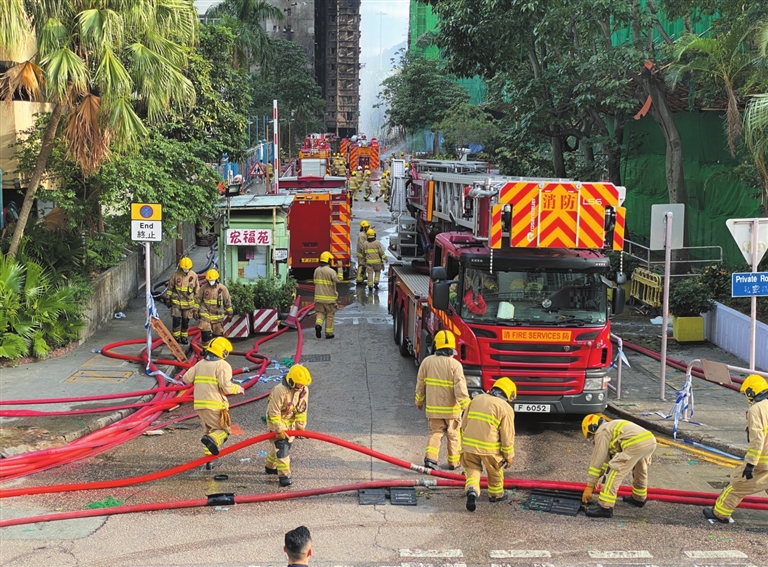 香港新界大埔区宏福苑26日下午发生五级火警。记者26日晚间至27日清晨在现场看到,特区政府有关部门正全力扑灭火灾,在社会各界的协助下妥善安置受灾居民,千方百计降低损失。