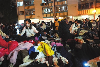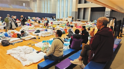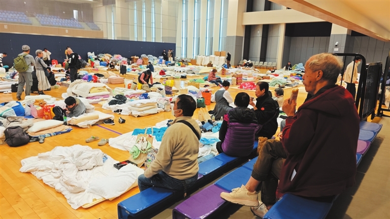 民安队和关爱队的工作人员穿梭其间,轻声询问市民需求,不时为老人递上热水,或分发食物。入口处设置了简易医疗中心等,为受灾市民提供援助。