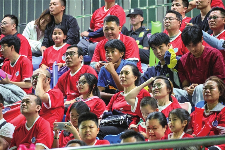 中场休息时,现场观众不断为三亚队加油助威。“能到现场观赛,心情非常激动。球员踢得非常投入,从他们身上,我感受到了活力与昂扬的斗志。”观赛的市民周女士说。