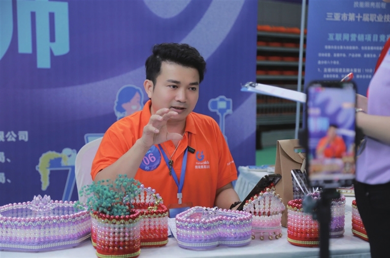 “天涯匠心汇”技能展示活动是本届竞赛的一大亮点。活动邀请三亚经济圈各行业协会、技工院校等10家单位参展,通过实物陈列、互动体验、图文解说等多种形式,集中展示了新业态行业发展、劳务品牌建设、非遗技艺传承等方面的技能成果,让现场观众直观感受到“技能自贸港”的独特魅力。